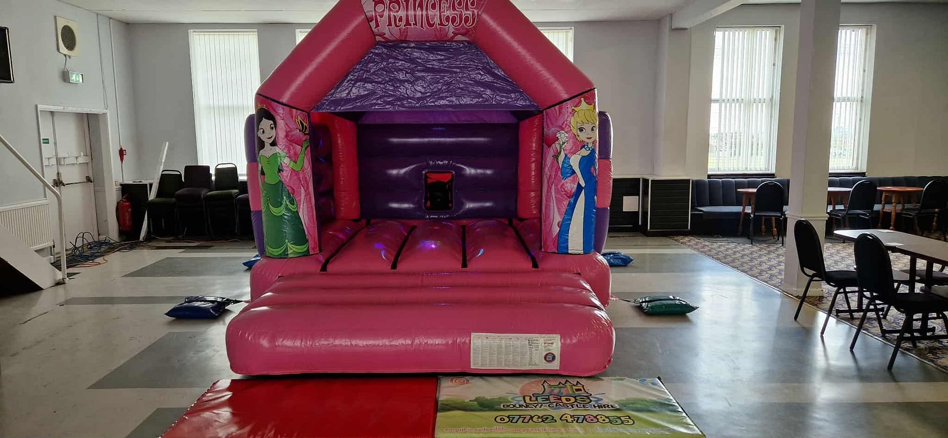 Spacious bouncing area with princess-themed design in pink & purple